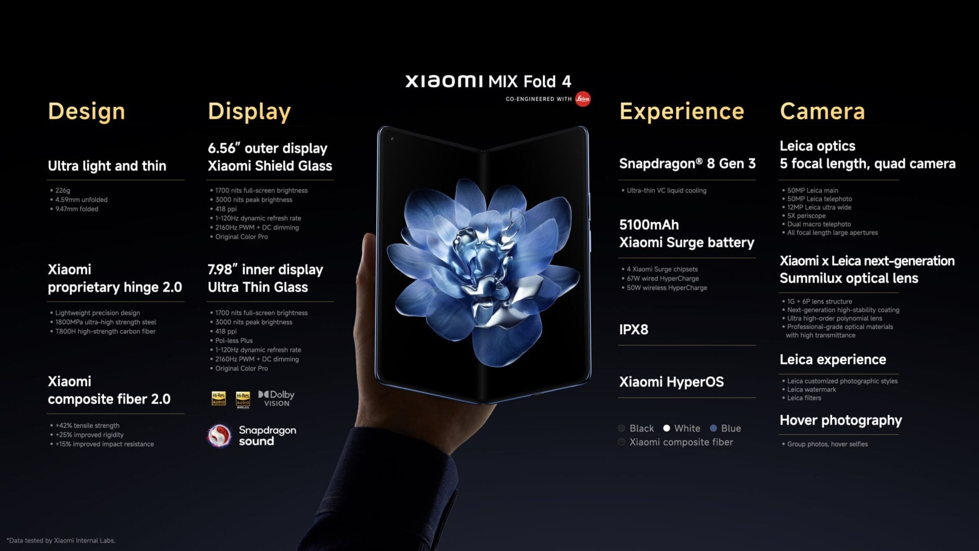 Tonight, Lei Jun, Xiaomi’s CEO, unveiled one of the most awaited products—the Xiaomi MIX Fold 4—in a press conference. It represents real innovation in foldable smartphones. Mixing Fold 4 is available in three configurations: 12+256GB for 8,999 yuan (1237$), 16+512GB for 9,999 yuan (1375$), and 10,999 yuan (1413$) for the top version of 16+1TB.