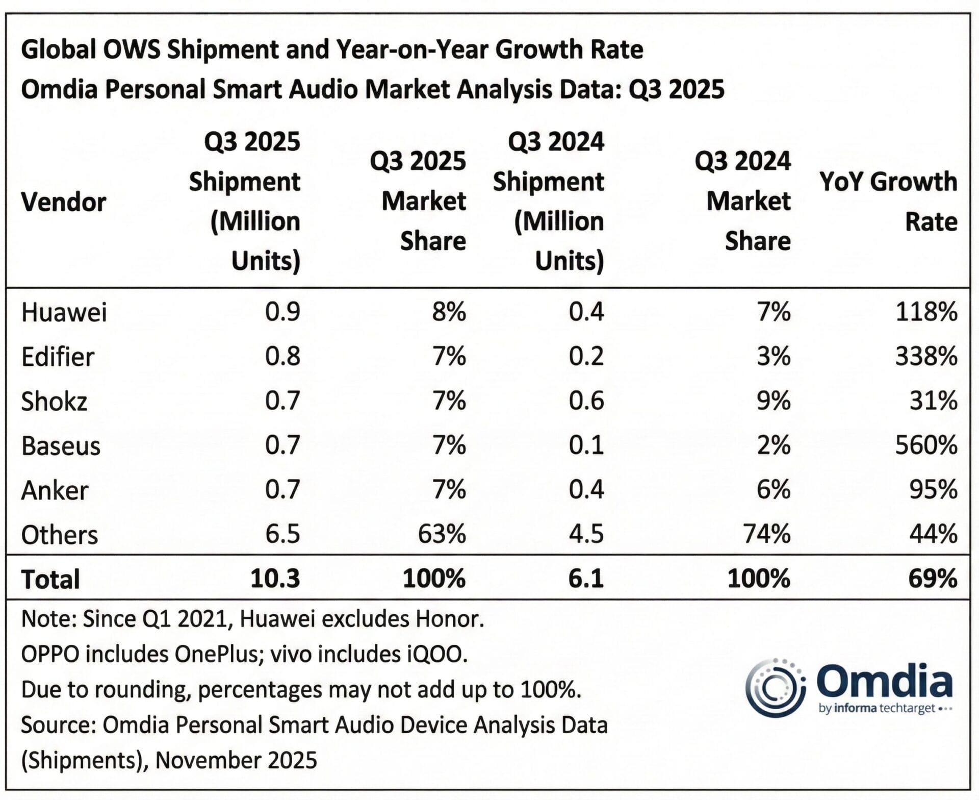 De acordo com uma previsão da Omdia, 40 milhões de unidades de OWS serão vendidas em 2026, representando 10% da participação geral no mercado de True Wireless Stereo. Entre essas mudanças, destacam-se: