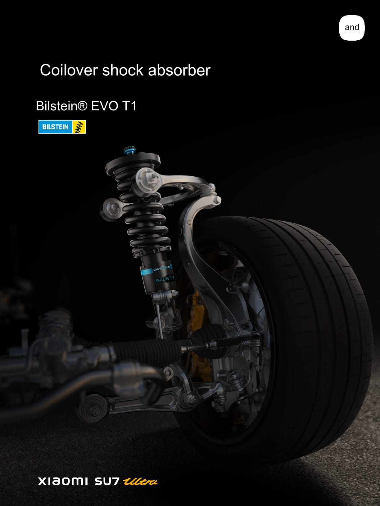 Thanks to high-performance CNC machining, the braking system boasts improved braking precision while the durability has been increased for maintenance-free long life, a hallmark of high-end sports and luxury cars. Coil-Over Shock Absorbers: More Control with Bilstein EVO T1 The SU7 Ultra has Bilstein EVO T1 coilover shock absorbers specifically tuned according to Xiaomi’s high standards.