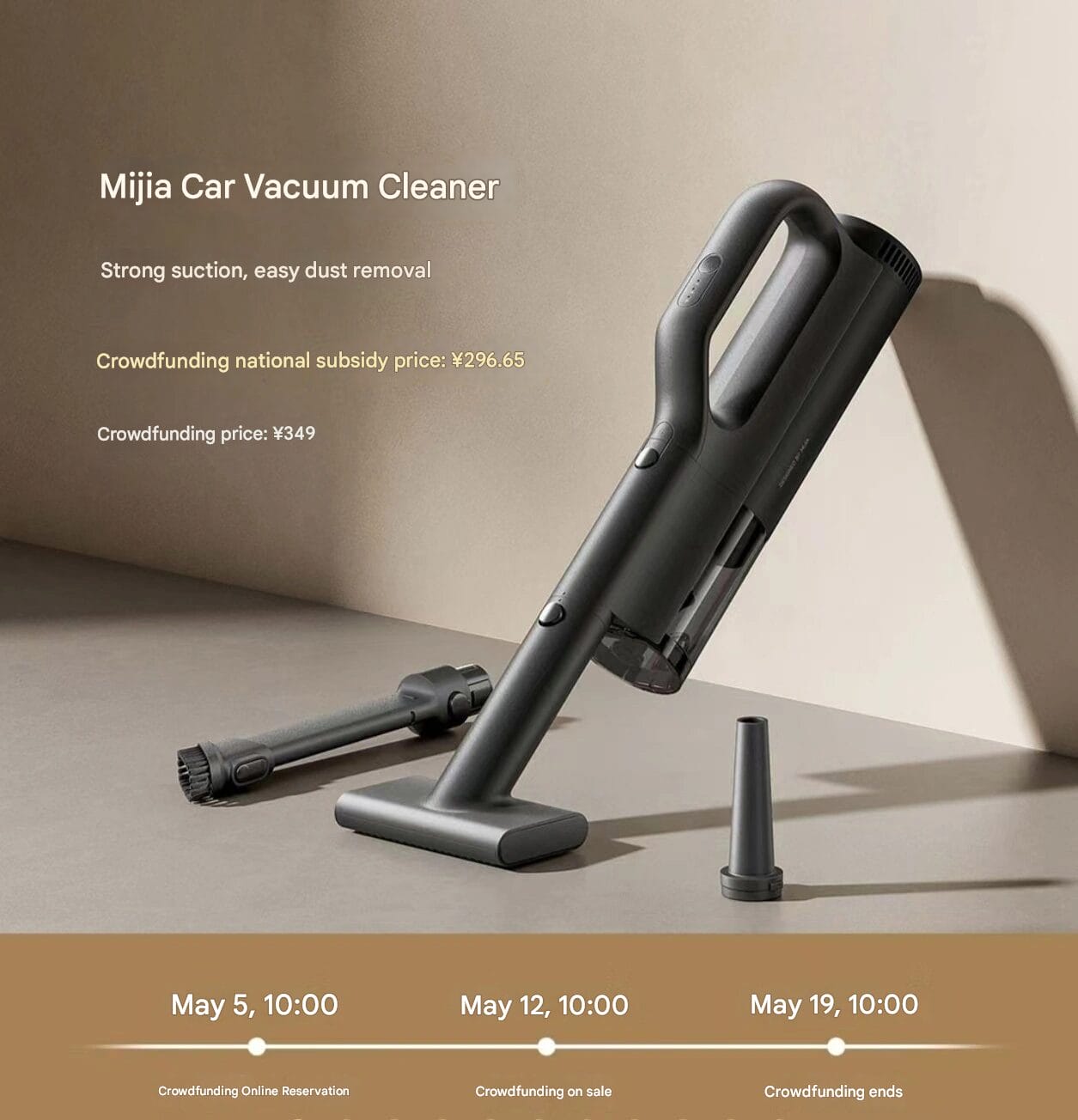 Der Mijia Car Vacuum Cleaner ist ab sofort auf der Crowdfunding-Reservierung verfügbar. Der Kampagnenzeitraum liegt zwischen dem 12. und 19. Mai 2025. Das Gerät ist zum Crowdfunding-Preis von 48 US-Dollar für Frühentschlossene erhältlich, der normale Preis in China liegt bei 49 US-Dollar. Durch subventionierte Preise wird es für qualifizierte Käufer/innen auf dem chinesischen Markt auf etwa 41 US-Dollar erschwinglich.